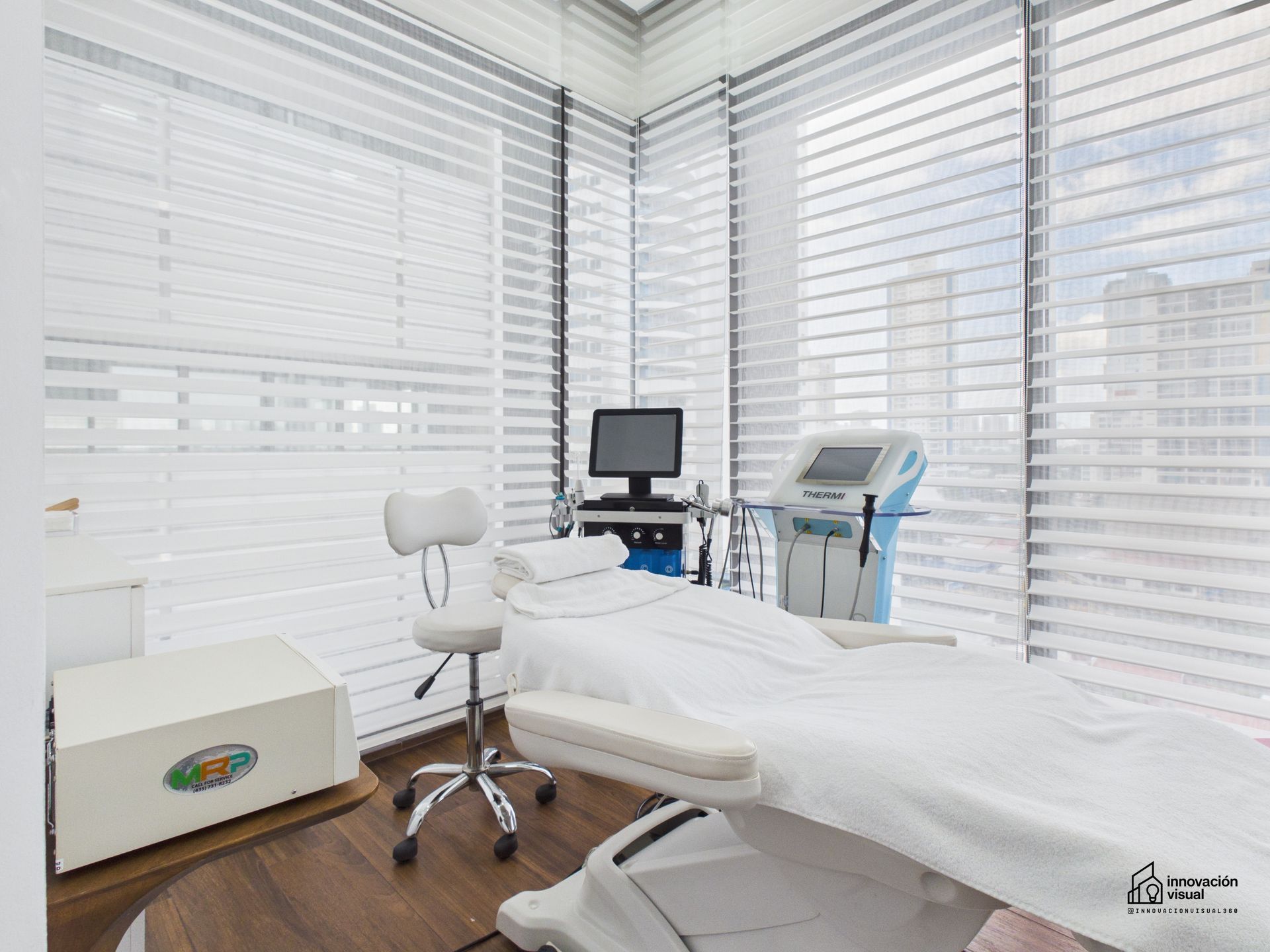 La producción fotográfica se realizó enfocándose en mostrar la clínica de forma limpia y estructurada, destacando el diseño interior, la iluminación y la disposición de los equipos de medicina estética. Cada imagen fue pensada para comunicar profesionalismo, cuidado por el detalle y un entorno preparado para ofrecer tratamientos de alto nivel.
