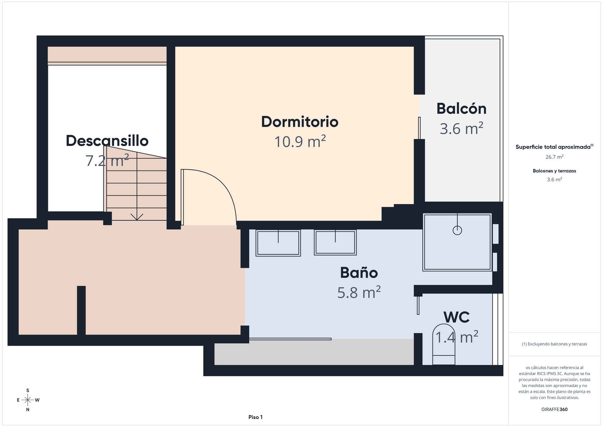 Este tipo de propiedad, con espacios abiertos y distribución vertical, requiere herramientas visuales que permitan entender claramente la relación entre ambos niveles. El recorrido virtual facilita una exploración completa del apartamento, permitiendo subir y bajar entre plantas y comprender la distribución real del espacio antes de una visita presencial.